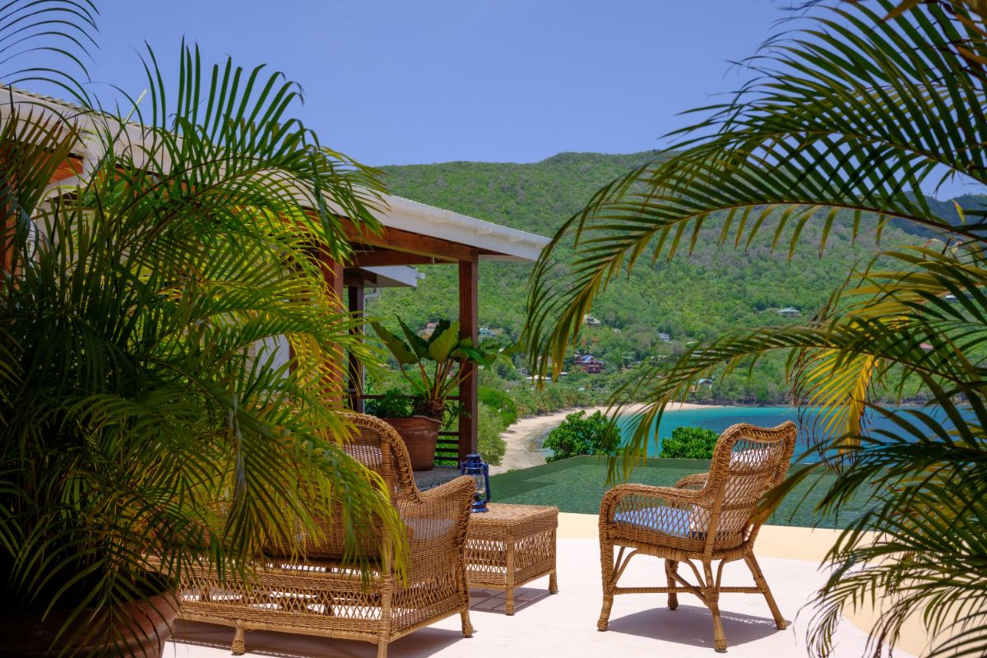 The villa sits high above Lower Bay, perfectly positioned between Lower Bay Beach and Princess Margaret Beach. From here, you have wide, open views across Admiralty Bay, the harbour, and the Caribbean Sea, while still being only a short walk from the sand.