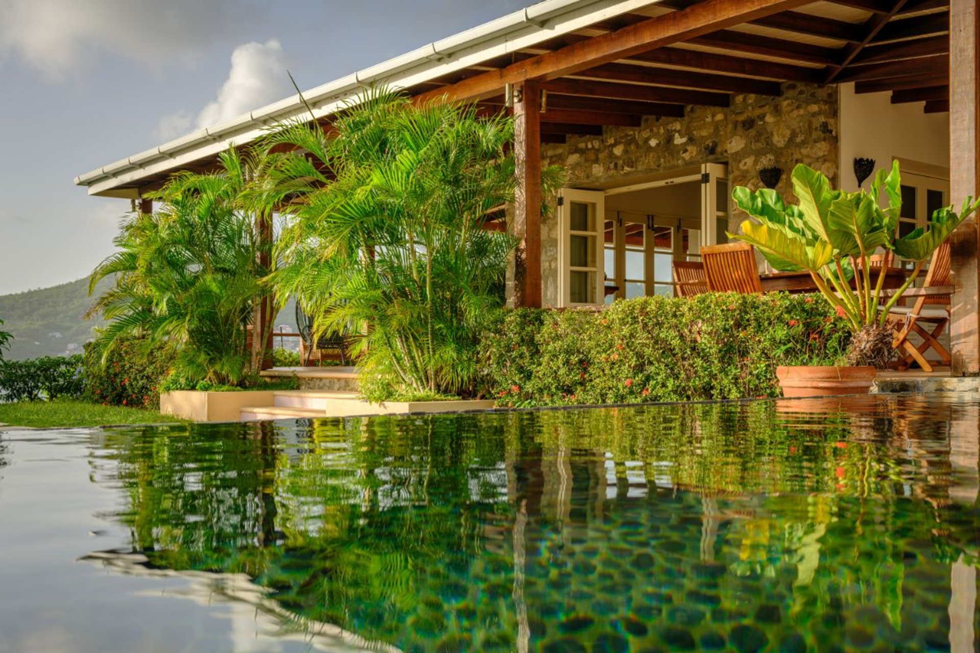 With a wraparound deck, tiled infinity pool, and secluded gazebo set within tropical gardens, the villa offers uninterrupted views in every direction and multiple places to relax throughout the day.